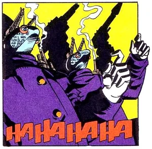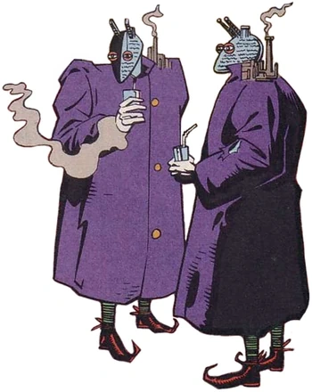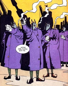 Los hombres de N.O.W.H.E.R.E. son una sociedad de la era moderna de supervillanos de los cómics de DC, enemigos de Doom Patrol, como muchos personajes de la serie, son una amenaza menos seria y un tipo de parodia, ya que la serie Doom Patrol en su conjunto tiende hacia la comedia en lugar de lo tradicional. melodrama de los cómics americanos.